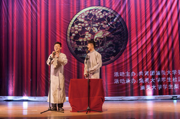 近日,由校团委主办,校学生社团联合会和校学生梨子剧社承办的校首届学生相声小品大赛决赛在古龙大礼堂举行。