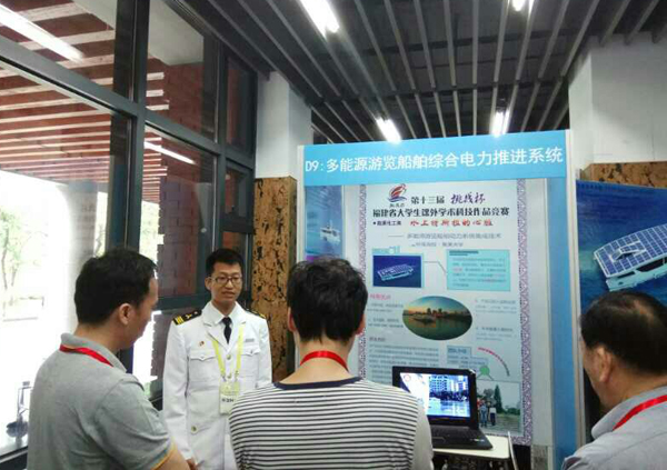 其中,我校作品《多能源游览船舶综合电力推进系统》(指导老师:俞万能、廖卫强)获一等奖,《特种无人机赛鱼鹰》(指导老师:马永政、李爱国)、《精准扶贫背景下革命老区贫困县脱贫工作调查思考——以福建省连城县为例》(指导老师:施晓丽、曾卫锋)、《供给侧改革视角下农产品摆脱“丰收悖论”魔咒的调研报告——以福建省平和县琯溪蜜柚产业为例》(指导老师:黄阳平、戴贵芬)获得二等奖,《基于低空航拍的交通事故现场图速绘制系统》(指导老师:唐凯)、《福利多元视角下厦门市外来务工人员随迁子女福利缺失机制及其完善的调研报告》(指导老师:黄阳平、戴贵芬)、《关于县(市)域古建筑保护与开发的研究——基于对南安市的调查》(指导老师:梁新潮、魏洁)、《铬过渡层厚度对金银符合纳米阵列LSPR光学性能的影响》(指导老师:刘璟)、《传统调味品行业的转型升级调研报告——以永春老醋产业为例》(指导老师:魏洁、王金安)获三等奖,《拐杖式折叠椅老人购物车》(指导老师:周梅)获优秀奖。