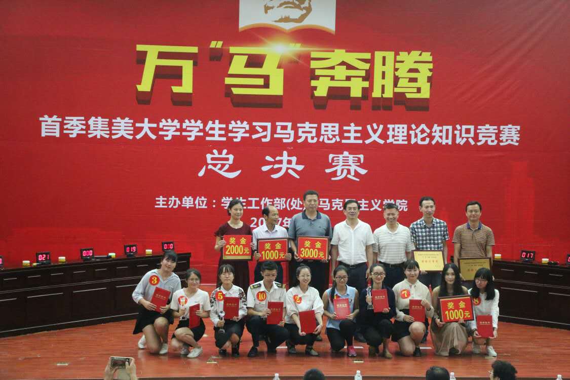 学校将从本次竞赛的优秀选手中选拔推荐综合素质强的5名选手组成亚洲中文精品乱码本科生代表队,参加今年暑期由中共福建省委教育工委主办的第二季福建省高校大学生学习马克思主义理论“一‘马’当先”知识竞赛活动。