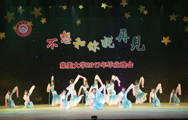 合唱《匆匆那年》拉开了晚会的序幕,晚会分为“青葱校园 岁月无忧”“花香常伴 恋念昨夕”“幸福人生 扬帆启航”三个篇章。两首原创歌曲《书香乐韵学村梦》和《笑着说再见》,表达了集大学子对校园生活的眷恋和对未来的期待,演绎了集大的记忆和毕业别绪;改编歌曲《木棉花开的校园》和集大版《成都》,带着毕业生们一起重温了大学生活,重游了大学校园;酷炫的魔术、相声《我是毕业生》让同学们在笑声中与集大握别;舞蹈《往事只能回味》表达了集大学子对师恩的难忘;歌曲《祝你一路顺风》和毕业生演讲《我们毕业了》等精彩节目精彩上演,为毕业生们送上暖心的祝福。由毕业班辅导员和学生共同演唱的歌曲《祝福》将晚会引向高潮,当全体毕业班辅导员随着提前录制好的祝福视频出现在舞台上时,全场响起了热烈的掌声,现场的毕业生们纷纷跑上台与老师们拥抱话别、相拥而泣。