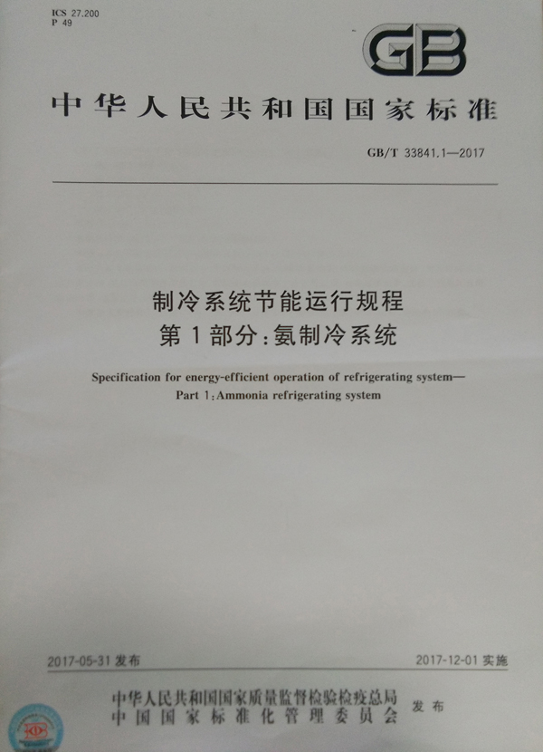 我校主导制定的氨制冷系统节能国家标准出版发行并将实施