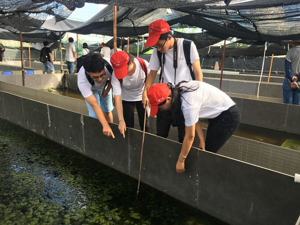 水产学院的国家级重点队“知农助农”实践队在王国栋副教授和彭海滨老师的带领下来到翔安内厝镇,走访调研养殖户叶纯清的观赏虾养殖场与牛蛙生产基地。队员们亲身体验了生产过程中所涉及的育苗技术、养殖方式和病害防治等环节,了解了养殖业的现状和前景。调研期间,王国栋还组织大家结合当前情况对国际上观赏虾养殖的现状进行分析讨论。队员们纷纷表示社会实践作为第二课堂,不但夯实了专业基础,还拓宽了知识面。一位队员表示:“这一方小小的育苗室,让我们发现,水产养殖不仅是门技术还是一门艺术。”