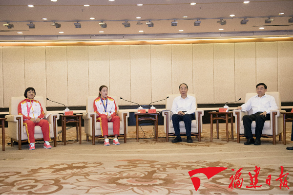近日,福建省委书记尤权、省长于伟国在福州会见了我校参加第十三届全国运动会获奖的体育学院陈莉琳教授、旅游管理2015级学生王庆玲。