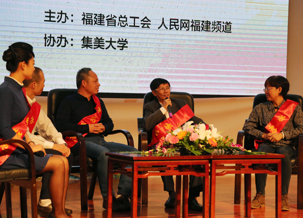 活动以“学习贯彻十九大 砥砺共筑中国梦”为主题,共邀请了五位劳动模范参加,分别是十九大代表、全国五一劳动奖章获得者、平潭综合实验区城投集团党委副书记、常务副总经理叶志勇,全国劳动模范、厦门国贸控股集团原党委书记、董事长何福龙,全国劳动模范、厦门市同安一中数学教师黄献磅,福建省五一劳动奖章获得者、我校食品与生物工程学院教授刘静雯,厦门市五一劳动奖章获得者、厦航空中乘务部乘务三队副队长赵迪。