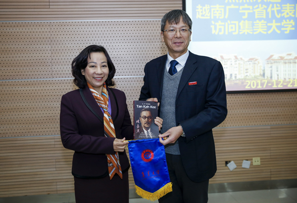 12月21日下午,越南广宁省人民委员会副主席武氏秋水率代表团访问我校。副校长曹敏杰会见了代表团并举行了座谈,省外办、市外侨办和我校国际合作交流处、航海学院、水产学院、食品与生物工程学院、工商管理学院等代表参加了座谈。