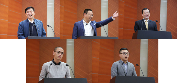 柯宗耀(上左)、朱金兵(上中)、邱京桥(上右)、苏海滨(下左)、孙承乐(下右)分别作报告