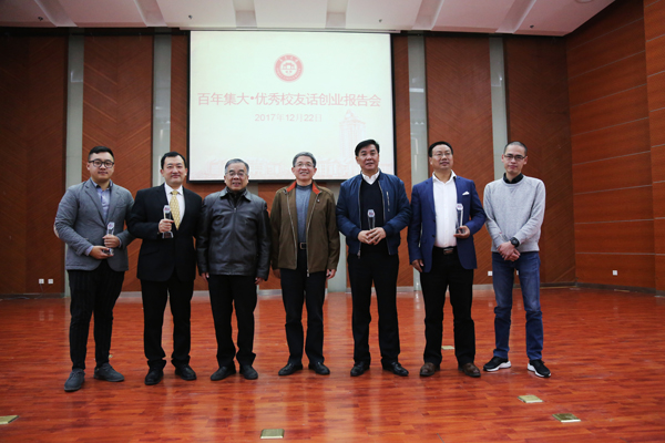 报告会上,柯宗耀、朱金兵、邱京桥、苏海滨、孙承乐等5位校友分别结合自己的经历和感受,从不同角度传授了成功创业的经验和方法,提出了很多如何更好地成长成才的建议,传递爱校情怀,也为明年母校百年华诞带来了祝福。