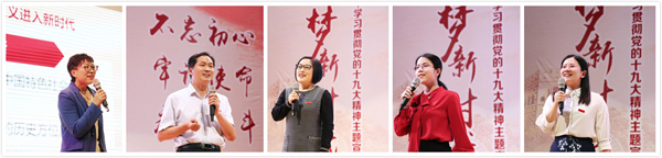 宣讲会采用“视频解说导引”“分模块串讲”的创新形式,我校福建省首批高校思想政治理论课教学名师工作室成员,分《新时代 新思想 新征程》《不忘初心 牢记使命》《十九大对我国国情、主要矛盾的判断及其依据》《坚定文化自信的重要性》《学习新党章 拥抱新时代》五个专题精彩阐述十九大精神。宣讲内容生动精彩,贴近实际、接地气,受到我校学生的欢迎。