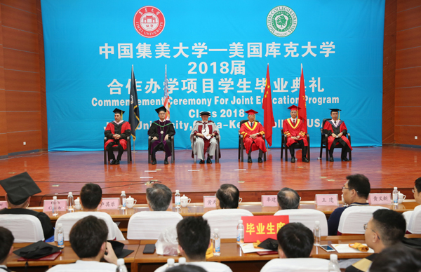 6月17日上午,我校与美国库克大学合作办学项目2018届学生毕业典礼在尚大楼105报告厅举行。库克大学校长贺睿拉博士,库克大学中国总校区行政校长黄磊康博士,库克大学生涯规划与体验式学习教授、名誉终身校长黄天中博士,库克大学国际项目亚洲部主任吉斯教授,我校副校长曹敏杰,校国际合作交流处、海外教育学院和诚毅学院相关领导、老师,库克大学外籍教授代表和中美库克项目2018届毕业生及学生家长出席了毕业典礼。