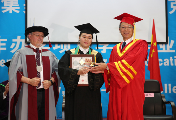 为库克中国总校区学业总成绩状元章琳颁发“金钥匙奖”