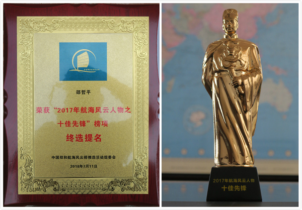 7月11日晚,以“传承郑和精神 共筑强国梦”为主题的第二届中国郑和航海风云榜揭榜典礼在上海举行,十大榜项逐一揭晓,我校航海学院院长邵哲平教授获“2017年航海风云人物十佳先锋”。交通运输部原部长黄镇东、原副部长徐祖远出席揭榜典礼并颁奖。