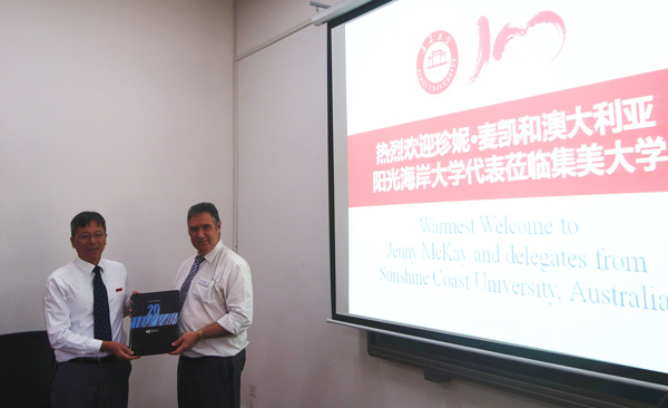 珍妮·麦凯为我校即将迎来百年校庆表示祝贺,希望增进友城教育文化交流;阳光海岸大学社会科学学院院长肯恩·格林伍德希望与我校在开展游学、师生互访、教学和科研合作等方面进行深入与广泛的合作,并和我校达成了合作共识。