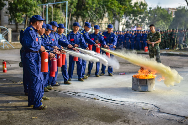 灭火演练在我校新校区、水产校区、航海校区、财经校区四个校区同时展开,在消防官兵讲授了如何正确报火警和自救逃生、如何使用干粉灭火器、如何扑救初起火灾等基本消防安全知识,强调注意事项并进行演示后,参演新生以多人一组的方式,使用干粉灭火器进行实操灭火。应急疏散逃生演练在新校区集友3#小高层学生公寓举行,分为火灾报警、现场警戒、灭火处置、组织疏散、水带灭火、消防云梯救人、现场救护等环节,公寓楼内新、老生约1300余人参加了演练,并顺利完成既定方案的各项内容。