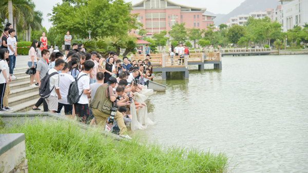 活动现场,谢潮添致辞,为本次锦鲤捐赠的校友代表王剑锋、杨伟、沙车颁发捐赠证书,携全体领导和嘉宾将100条锦鲤投入尚大楼前人工湖,投喂饲料,寓意“锦”绣百年、“鲤”赞集大。我校水产学院有关领导解读了此次大赛的筹备情况和比赛规则;陈雄平和王剑锋分别讲话,为本次大赛和母校百年校庆送上诚挚的祝福。