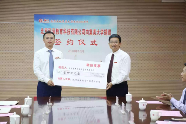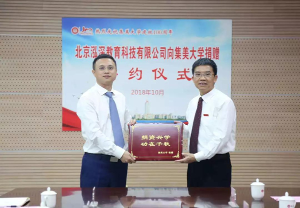 10月17日,我校与北京泓深教育科技有限公司签订捐赠协议,北京泓深教育科技有限公司向我校捐赠1000万元。