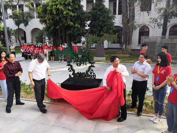 据悉,台湾东方设计大学和我校美术学院在学术、教学交流中结下了深厚的友谊。我校领导十分重视此次捐赠的雕塑作品,精心选址,将台湾东方设计大学捐赠的雕塑作品放置在我校国家保护建筑科学馆前。