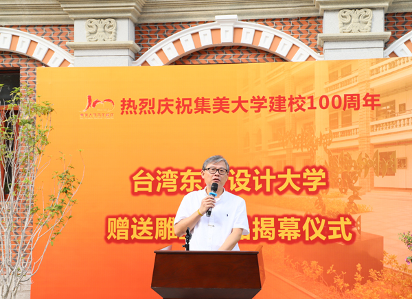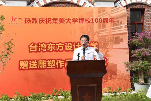 我校百年华诞之际,作为百年校庆贺礼,台湾东方设计大学捐赠著名雕塑艺术家原武典的作品——《水中的太阳》给我校。10月21日下午,我校在科学馆园区举办台湾东方设计大学捐赠雕塑作品揭幕仪式。台湾东方设计大学校长吴淑明,我校校长李清彪,福建省美术家协会驻会副主席、秘书长赵胜利,厦门市工艺美术学会副会长康兵,校国际合作交流处、美术学院有关领导,我校师生代表出席了揭幕仪式。