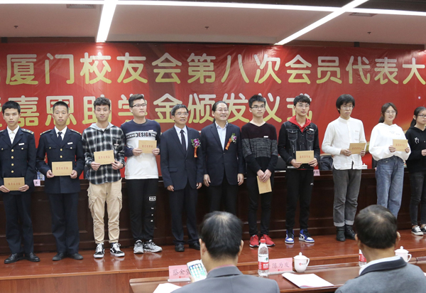 12月22日,嘉恩助学金颁发仪式在我校尚大楼103会议室举行。我校校长李清彪、副校长曹敏杰、原校长辜建德,厦门市政协港澳台侨外事委处长陈惠全、厦门市民政局社会组织管理局副局长吴绵绵、集美校友总会理事长陈呈、厦门瀚盛游艇有限公司董事长胡乃盛、福信集团董事长吴迪、罗普特科技集团董事长陈延行、厦门兆力机械有限公司总经理洪力等相关领导、嘉宾、校友代表、在校师生代表近200人参加了颁发仪式。