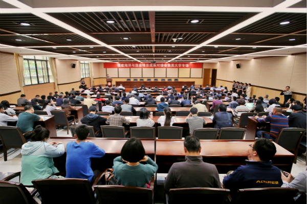 我校科研处负责人推介了我校涉海(渔)科技创新平台及重要科技成果。我校轮机工程学院徐轶群教授、水产学院王志勇教授分别作了题为《海洋通信技术与海事海洋智慧化应用》《全基因组选择育种技术及其应用》的报告。
