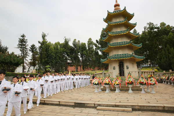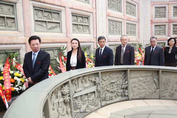 沈灿煌、李清彪,陈嘉庚先生后裔,我校校友会及师生代表、厦门市各界人士共同祭扫了校主陈嘉庚先生陵墓并敬献花篮,列队、默哀,向校主陵墓三鞠躬、绕陵墓一周。