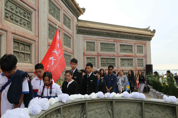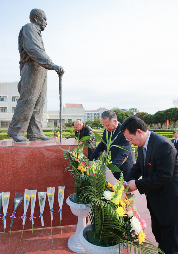 校党委副书记郑志谦、陈嘉庚先生后裔和我校师生代表,还与厦门市及集美学村各界人士到集美敬贤公园,共同祭扫了陈敬贤先生的墓塔。
