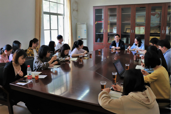 沈灿煌勉励支部党员要学好专业知识,不断提高自身素质,坚定理想信念,为学校“双一流”建设贡献力量;表示今后要多与同学们交流互动,多听取大家对学校工作的意见。