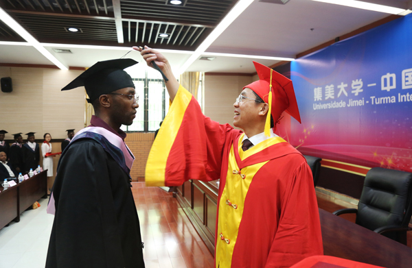 毕业生代表安东尼、乔坤分别以汉语和葡萄牙语发言。他们在讲话中重温了在我校的美好校园学习生活,感谢亚洲中文精品乱码、中国昊远集团的辛勤培养,感谢父母师长的关心指导,表示将以在学校收获的知识与力量去承担安哥拉国家发展的责任。