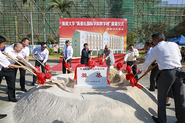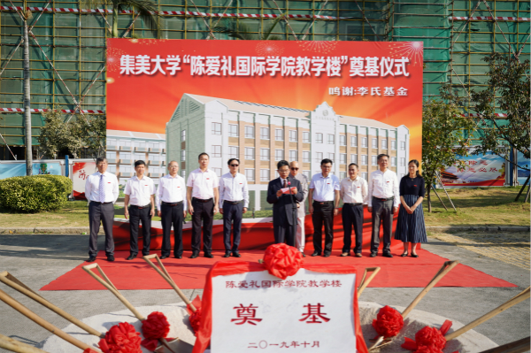 10月20日,在迎来建校101周年华诞的喜庆日子里,我校举行陈爱礼国际学院教学楼奠基仪式。陈嘉庚先生长孙陈立人先生,我校校长李清彪、副校长曹敏杰,学校发展规划处、国际合作交流处、教务处、招生办、基建处、海外教育学院(陈爱礼国际学院)领导以及师生代表参加了奠基仪式。