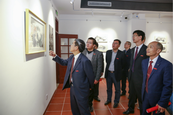 揭牌仪式后,李清彪、洪文建与相关部处、美术与设计学院领导一起参观了原创艺术之美—两岸大学生优秀美术作品展、大美集美-笔墨画嘉庚-李炯毅水墨作品展。