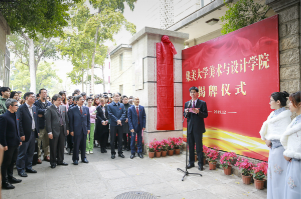 洪文建在致辞中指出,校主陈嘉庚先生在创校之初就强调开展丰富多彩的教学活动,重视培养学生的艺术素养,于1925年创办集美师范艺术科(美术与设计学院的前身),为我校美术与设计学院的发展奠定了坚实的基础。他强调,我校“美术学院”更名为“美术与设计学院”,符合新时代学科发展的要求和趋势,是学校为建设“双一流”大学做出的战略布局,也是学校为满足社会发展需求、服务省市高质量发展的具体举措。他要求,美术与设计学院要以此为契机,对标国内一流美术设计院校,全面提高教育教学质量,进一步增强学科优势和核心竞争力,进一步增强服务社会的能力和水平,为学校一流大学建设做出新的更大贡献。