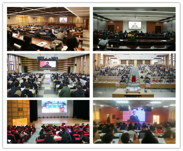 会议设一个主会场、六个分会场,网络同步直播。全体校领导,全体教职工共计2000多人参加了会议。会议分别由校党委副书记洪文建、副校长曹敏杰主持。