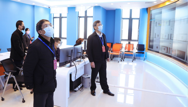 2月17日,我校线上教学如期开课。早上8点,校教学监控中心的大屏幕上实时显示着正在线上教学的课堂情况,校党委书记沈灿煌、校长李清彪、副校长曹敏杰到校教学监控中心进行网上巡课和指导,教务处、研究生处、信息化中心相关人员也全程关注线上直播教学过程。