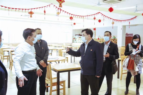按照中央、省、市相关部署,我校延迟开学,科学防控,紧紧把牢校园“安全门”。胡昌升一行先后前往我校校门、临时隔离观察点、食堂等关键防控区域查看校园安全保障情况。沈灿煌围绕联防联控、线上教学、党员先锋服务、资助育人、心理疏导等方面,汇报了我校各项防疫措施及成效。