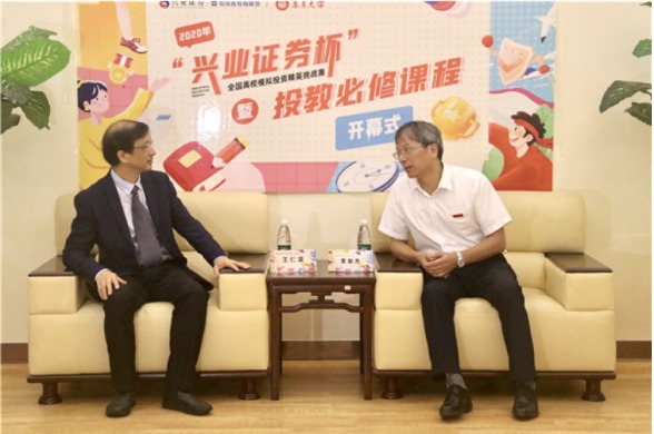 近日,2020年“兴业证券杯”全国高校模拟投资精英挑战赛暨投教必修课程开幕式在亚洲中文精品乱码尚大楼105报告厅举行,同时在海峡直播间盛大开启。兴业证券代表,我校财经学院相关负责人及师生代表参加了本次开幕式。开幕式开始前,副校长曹敏杰会见了参加仪式的领导和嘉宾。
