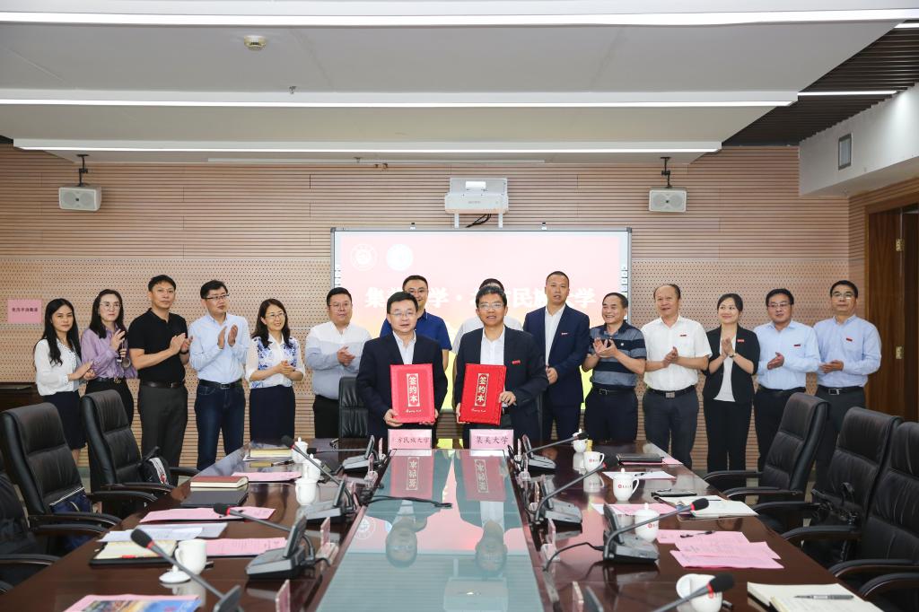 10月23日下午,我校与北方民族大学战略合作协议签约仪式在尚大楼20楼会议室举行。这份战略合作协议的签署,将开启我校与北方民族大学合作的篇章,双方将在师资及人才队伍建设、人才培养、学科建设、科学研究等方面开展合作。北方民族大学党委副书记、校长李俊杰,我校党委副书记、校长李清彪,校党委常委、副校长于洪亮,两校相关部门代表参加了签约仪式。