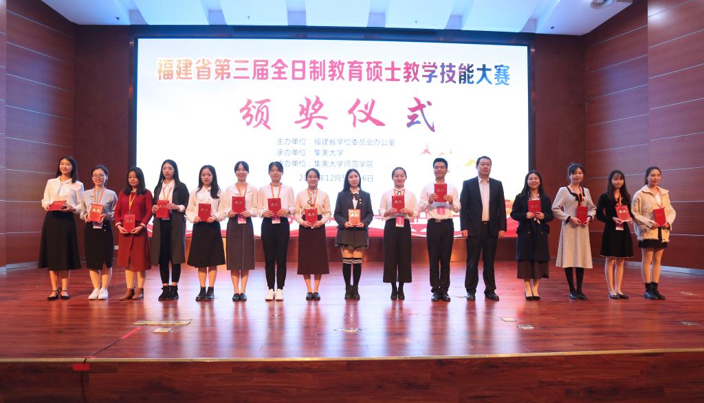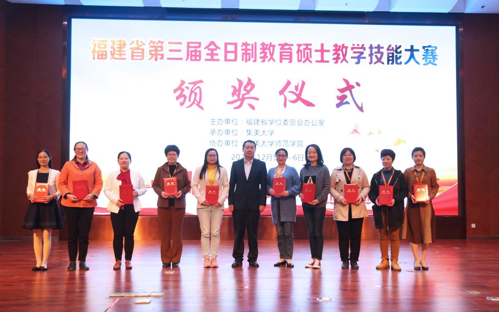 我校教育硕士研究生在此次大赛中取得优异成绩,潘婉婷、冯诗尹、黄安琪、林建辉、邱燕梅、刘思洋、曾文苑等7人荣获一等奖,马念、朱柯、刘春莉等3人荣获二等奖,章意培、石静萱、王佳鑫、李柯璇、刘诗婷等5人荣获三等奖。张哲英、许文君、刘小辉、宾红华、谢加良、赖怡静、安小应鸟、李雪、陈文胜、谢书书、林晓霞、毛青松、朱福胜、朱荣坤、陈金田、杨建华、李彦敏等17位老师荣获“优秀指导教师”称号。