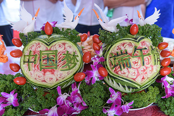 活动现场侧方,长桌上摆满了由全校14个食堂选送的各式各样的粽子,并邀请师生现场品鉴,投票选出三个“最佳人气奖”。在美食品鉴区,刀功精巧的中式菜肴、造型各异的花样面点共计20道菜肴集中亮相。据悉,本次活动还结合了5月29日开展的“践行工匠精神 献礼建党百年——后勤集团2021年食堂员工技能大赛”,对来自全校17个餐厅的获奖选手们进行现场颁奖。每位获奖选手各拿出了一道拿手菜,向师生展示了中华传统饮食文化。