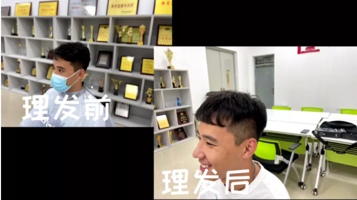 疫情发生以来,学校后勤集团安排有理发特长的员工,在各校区轮流为同学们理发。