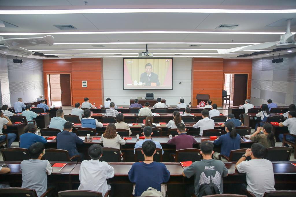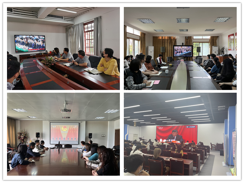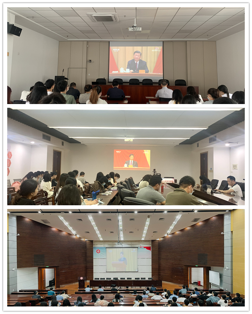 全体校领导、部分职能部门负责人、各学院团委负责人和学生代表在尚大楼108会议室集中收看大会直播。