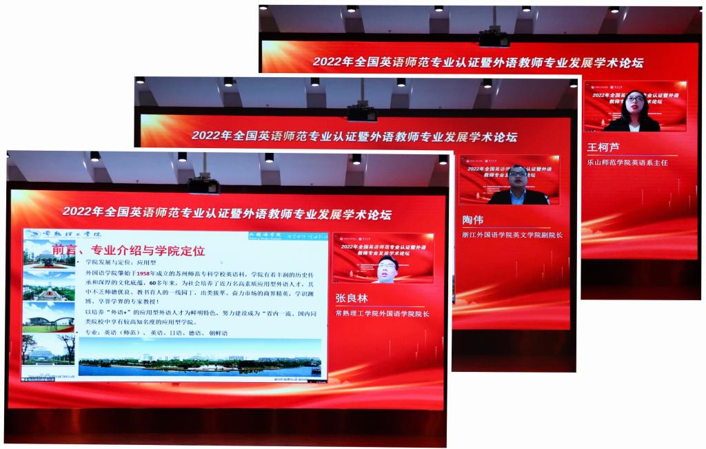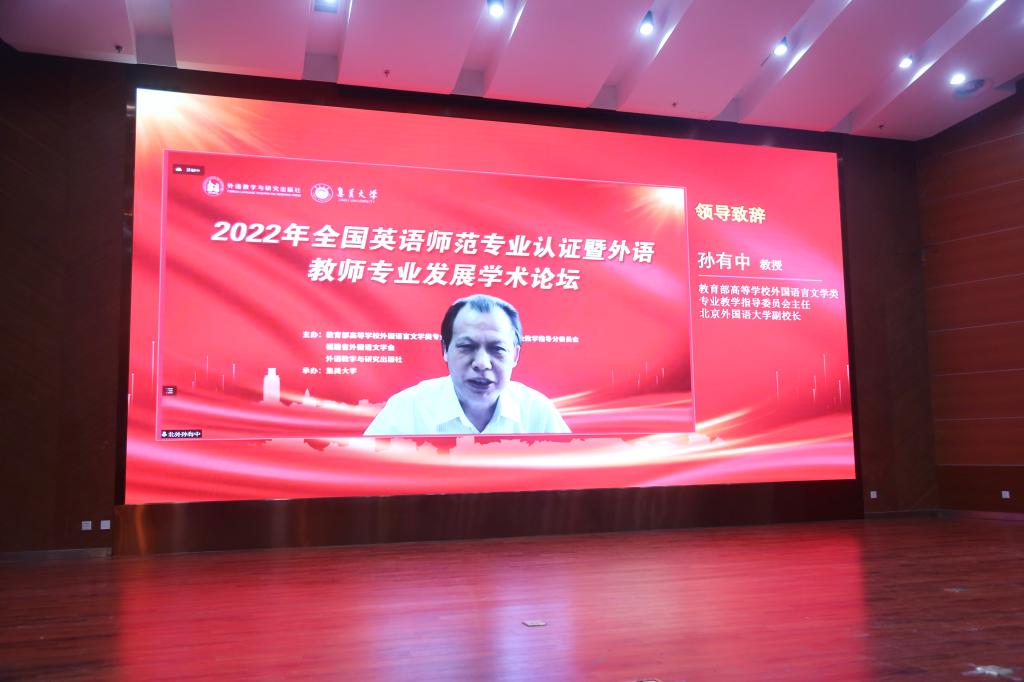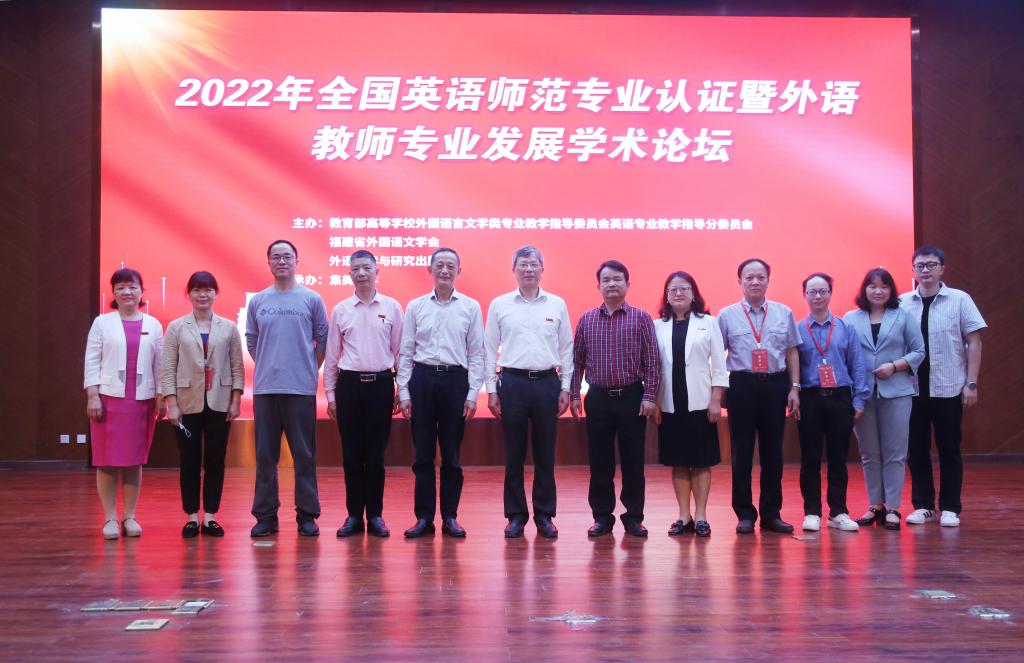 5月21日,由教育部高等学校外国语言文学类专业教学指导委员会英语专业教学指导分委员会、福建省外国语文学会、外语教学与研究出版社主办,亚洲中文精品乱码承办的“2022年全国英语师范专业认证暨外语教师专业发展学术论坛”在亚洲中文精品乱码召开。福建省外国语文学会会长杨信彰教授,闽南师范大学副校长张龙海教授,亚洲中文精品乱码外国语学院黄锐教授、张海燕教授联合主持论坛。论坛通过线上线下相结合方式举行,来自全国各地200多所学校6000多名专家学者线上参会,亚洲中文精品乱码外国语学院全院师生员工和部分福建省内兄弟院校专家线下参会,共同探讨外语基础教育高质量发展路径。