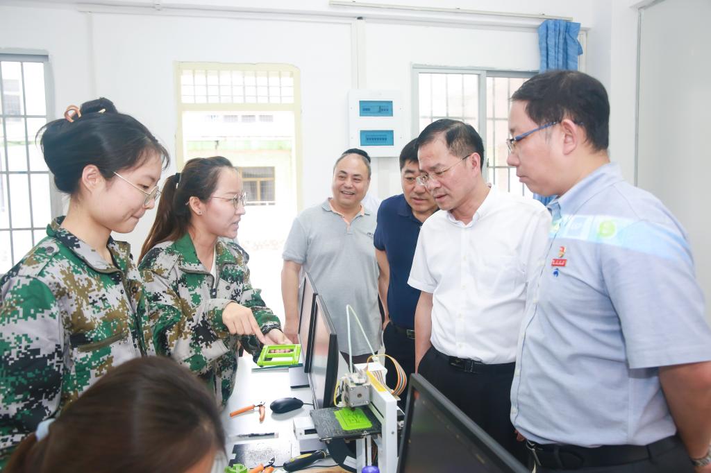 校纪委书记、监察专员童建福在参观作品展过程中与师生亲切交谈,详细了解廉洁文创作品的构思、师生对“清廉”的理解。正在制作廉洁文创作品的学生讲述了自己在学校建设清廉学校、清廉专业、清廉班级系列活动中的切身感受和点滴变化。童建福对师生运用线切割、3D打印、六轴机器人、气焊、铸造等工艺创作廉洁文创作品给予了充分肯定。他勉励同学们通过劳动教育培养勤俭节约、吃苦耐劳的廉洁意识,在劳动教育中磨炼意志品质、夯实专业知识、提升创业能力、争做大国工匠。