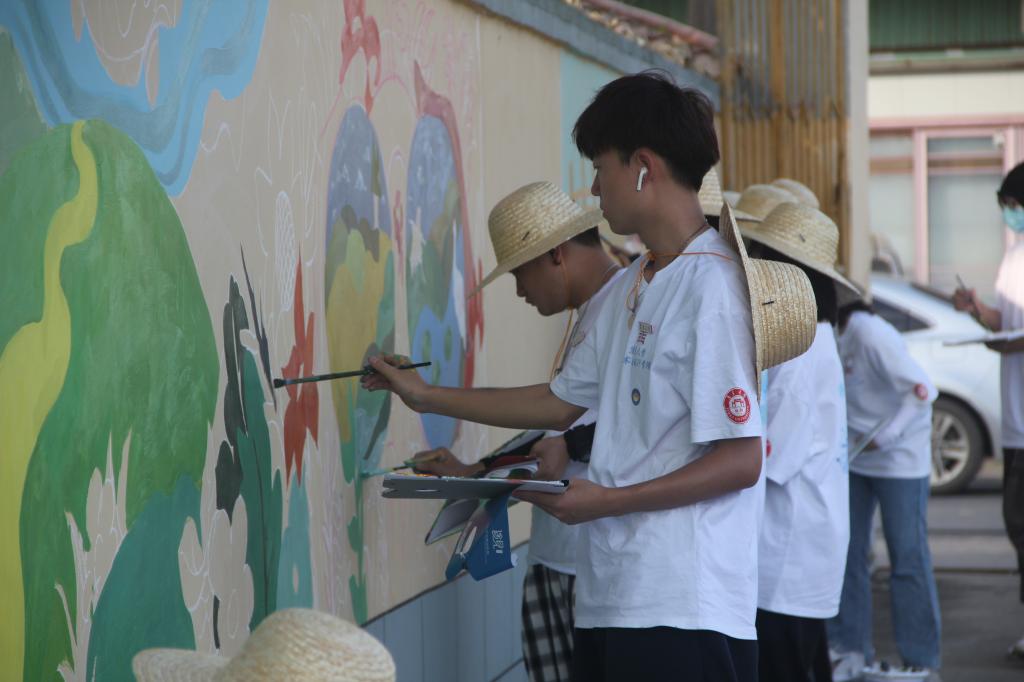 艺绘筑梦乡村振兴服务队队员在集美区灌口镇李林村进行墙绘