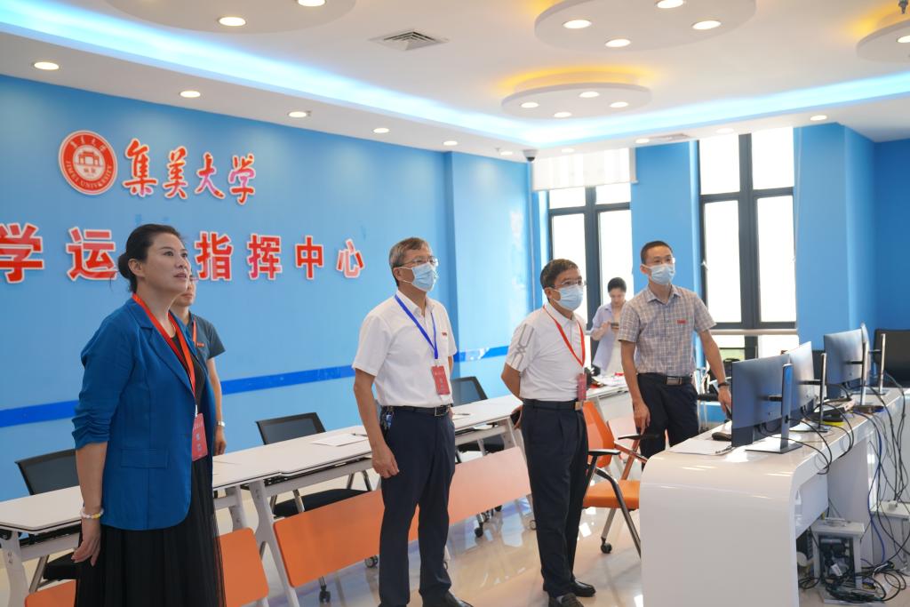 8月29日,我校秋季学期如期开学。因疫情防控工作需要,开学第一天,我校共有418门次课程实施线上教学。校党委书记沈灿煌、校长李清彪、副校长曹敏杰到校教学运行指挥中心进行网上巡课和指导,并深入学生宿舍实地检查学生在宿舍上课情况。学校办公室、教务处、信息化中心相关人员也全程关注线上直播教学过程。