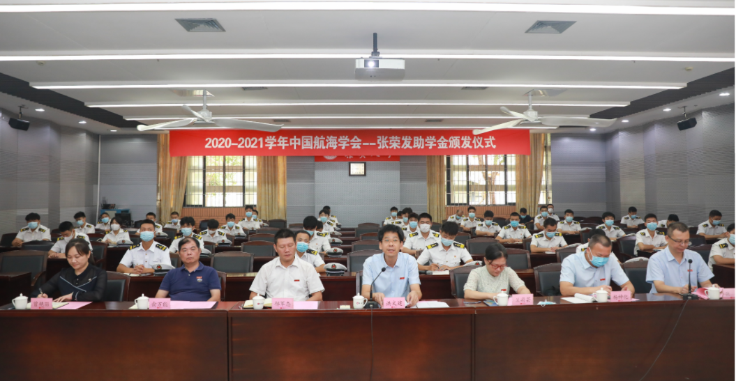 9月8日,2020-2021学年中国航海学会张荣发基金会助学金颁发仪式在我校举行。中国航海学会理事长何建中,我校党委副书记洪文建、副校长于洪亮,张荣发基金会代表邱国诚、长荣公司代表张进兴出席了颁发仪式。仪式由校学生工作部负责人主持。