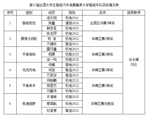 全国大学生智能汽车竞赛是一项综合性的专业学科竞赛,涉及计算机、电子、自动控制、模式识别、机械等学科知识。通过本次备赛和参赛,我校智能车队的队员们在专业知识技能、团队协作能力等方面都得到了有效的锻炼和稳步的提高,为今后学习和工作打下了良好的基础。