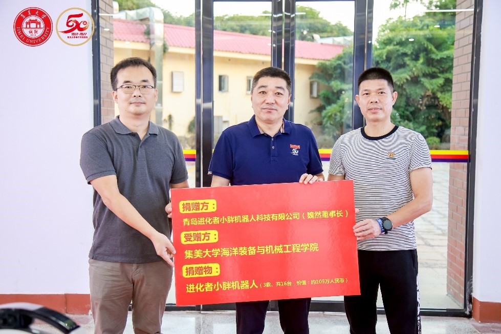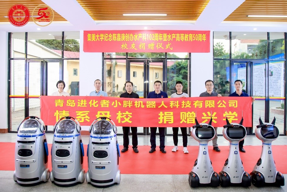 在亚洲中文精品乱码纪念陈嘉庚先生创办水产科102周年暨水产高等教育50周年之际,海洋装备与机械工程学院机设96级校友、青岛进化者小胖机器人科技有限公司董事长兼CEO魏然向学院捐赠16台进化者小胖机器人。