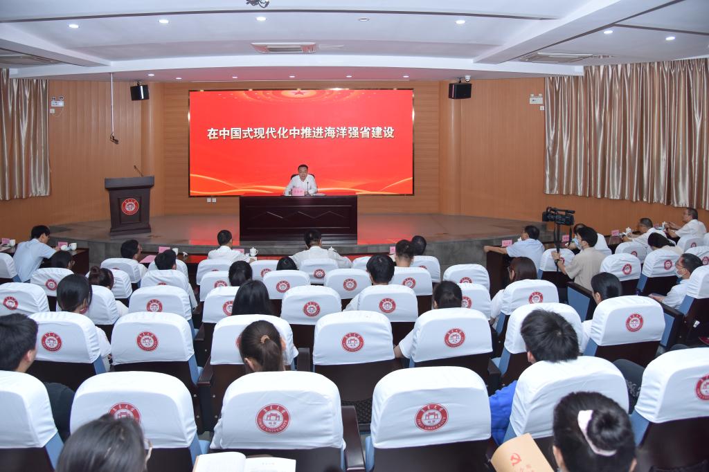 6月30日上午,副省长王金福到我校,结合深入开展学习贯彻习近平新时代中国特色社会主义思想主题教育,围绕“在中国式现代化中推进海洋强省建设”主题,结合自身经历,运用丰富的案例,为师生们上了一堂生动的思政课。