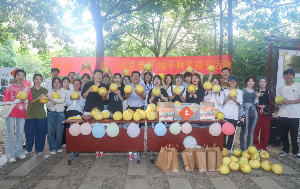9月27日下午,校党委书记沈灿煌与相关部门负责人参加港口与海岸工程学院“因为柚你,硕果累累”柚子林采摘活动。