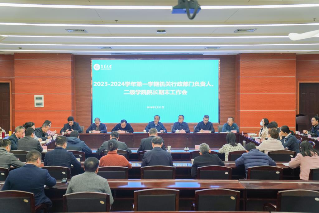 1月12日下午,我校召开2023-2024学年第一学期机关行政部门负责人、二级学院院长期末工作会议。校长谢潮添,相关部门负责人、二级学院院长等参会。