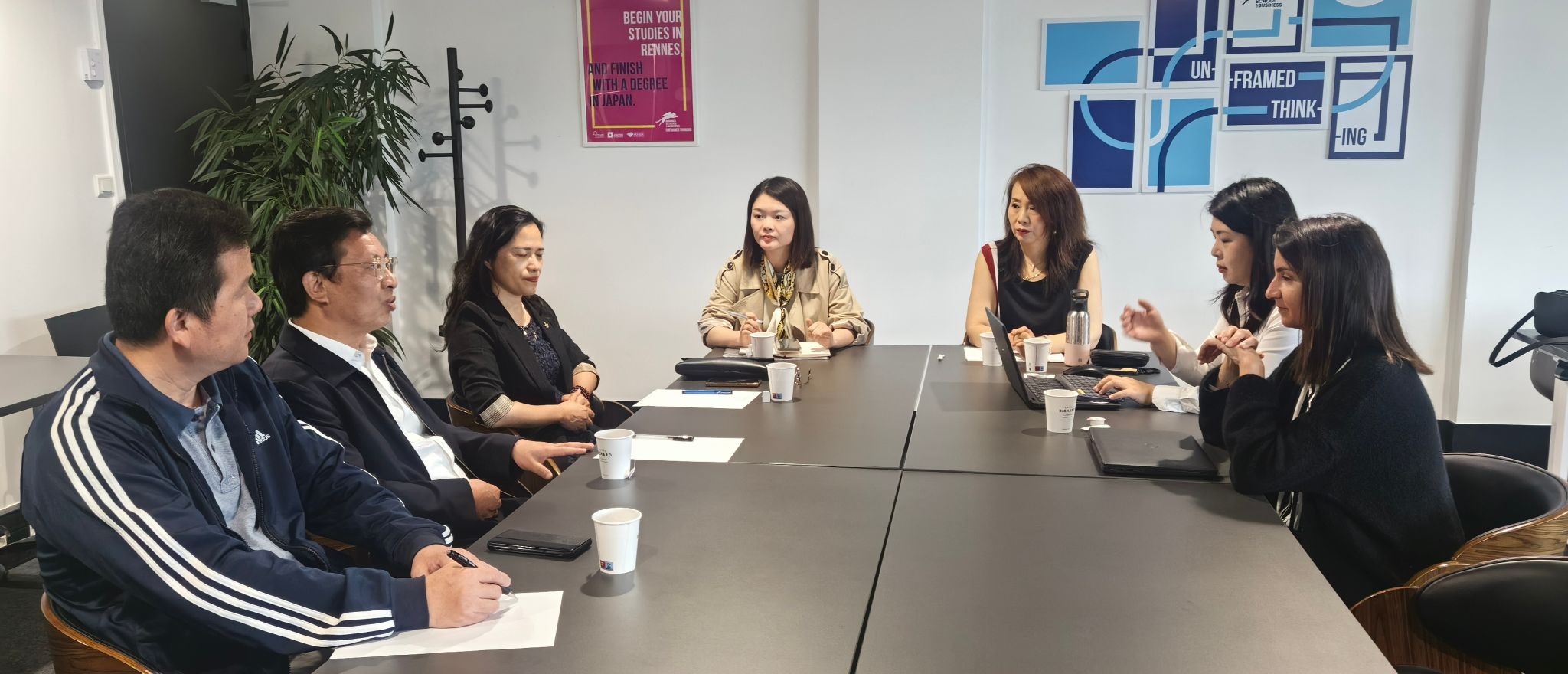 在法国,代表团一行会见法国雷恩高等商学院国际发展部部长Caroline、雷恩高等商学院中国区经理Louise和中国区代表Cherry等,就两校合作的“金融学国际精英班”人才培养方案、课程体系、项目宣传方式等进行进一步探讨。